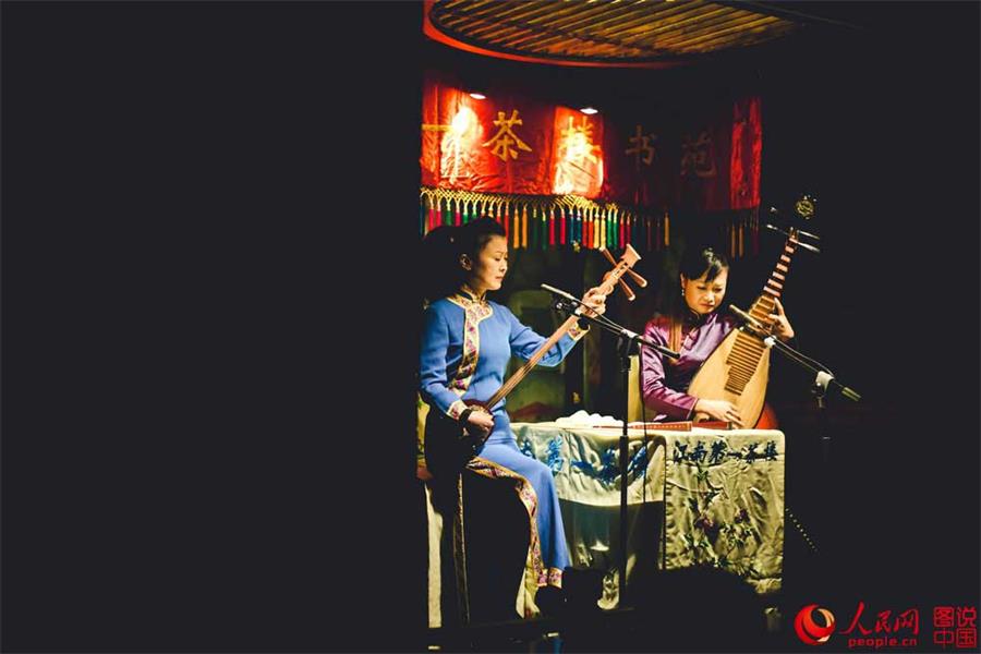 Two women perform the art of narrative storytelling. (Photo/people.cn)