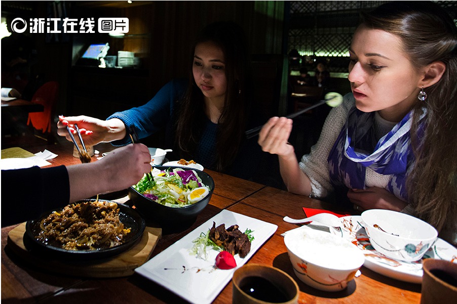 Nastya and Aygul are Diana's best friends. They always hang out together. Diana's favorite food is Japanese. (Zhejiang Online/Tong Xiaolei) |