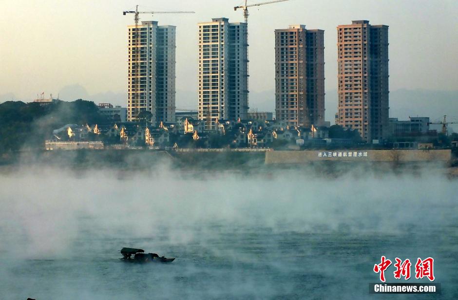 Mist shrouds the Yangtze River in the morning of Dec. 17 in Yichang city, central China's Hubei province. According to meteorological experts, the phenomenon occurred due to the sudden drop of temperature recently which resulted in the water temperature being higher than the air temperature. (CNS/Liu Junfeng)