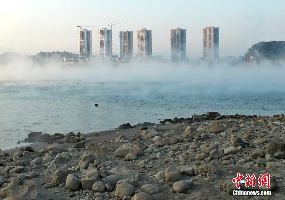 Mist shrouds the Yangtze River in the morning of Dec. 17 in Yichang city, central China's Hubei province. According to meteorological experts, the phenomenon occurred due to the sudden drop of temperature recently which resulted in the water temperature being higher than the air temperature. (CNS/Liu Junfeng)