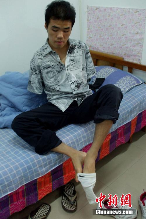 Wu puts on clothes. (Photo/ Ma Yiheng)