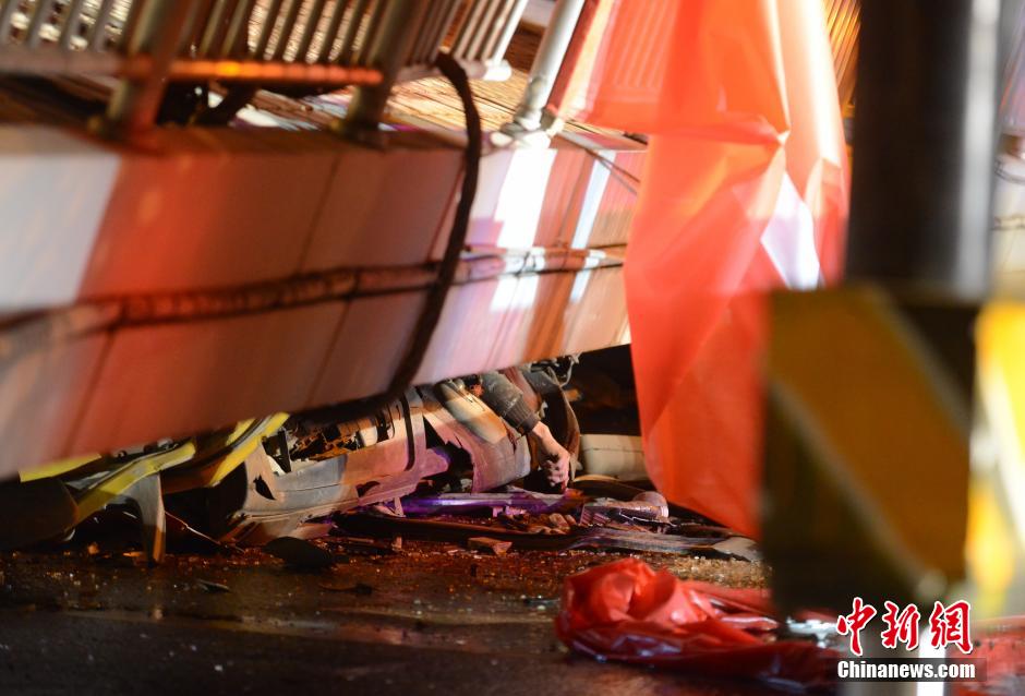 The truck cab crushed under the overpass, on Dec, 18. (CNS/Yang Huafeng)