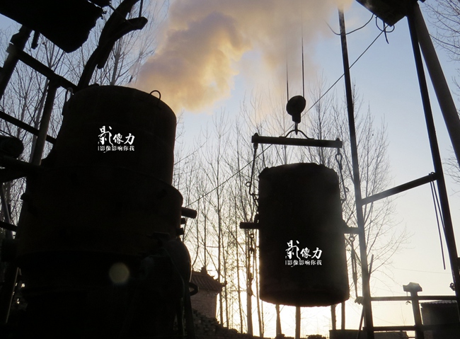 The sun just rises and the furnace is already in place. The next step is to light a fire for melting the iron slices. Traditional cast iron process consists of several steps. (iqilu.com/Tian Ran)