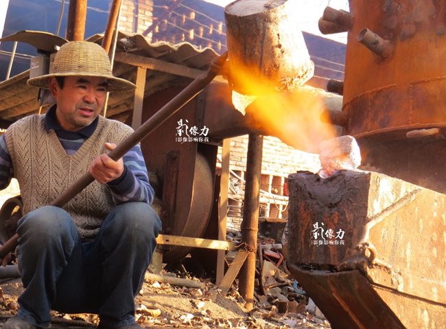 Before spooning molten iron, workers need to heat the casting ladle first. (iqilu.com/Tian Ran)