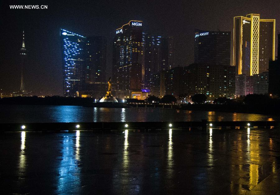 This photo taken on late Dec. 19, 2014 shows the illuminated cityscape of south China's Macao. Macao will mark the 15th anniversary of its return to China on Dec. 20. (Xinhua/Cheong Kam Ka)