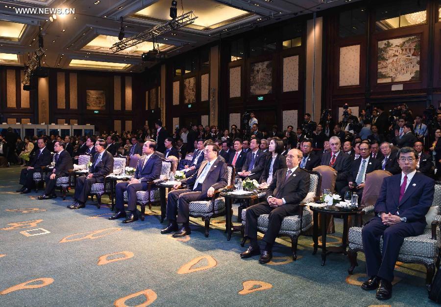 Chinese Premier Li Keqiang (3rd R, front) attends the fifth summit of the Greater Mekong Subregion (GMS) Economic Cooperation in Bangkok, Thailand, Dec. 20, 2014. (Xinhua/Rao Aimin)