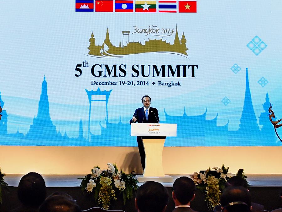 Chinese Premier Li Keqiang delivers a speech at the opening ceremony of the fifth summit of the Greater Mekong Subregion (GMS) Economic Cooperation in Bangkok, Thailand, Dec. 20, 2014. (Xinhua/Rao Aimin)
