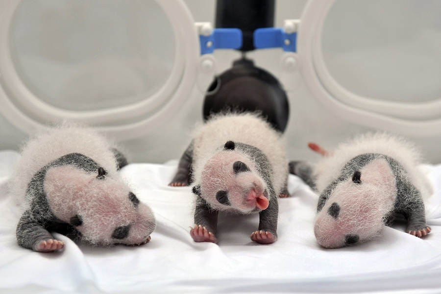 Aug. 17, 2014 is the 20th day after the triplet panda babies came to the world. Their appearances had changed a lot. (Photo/People's Daily Online)