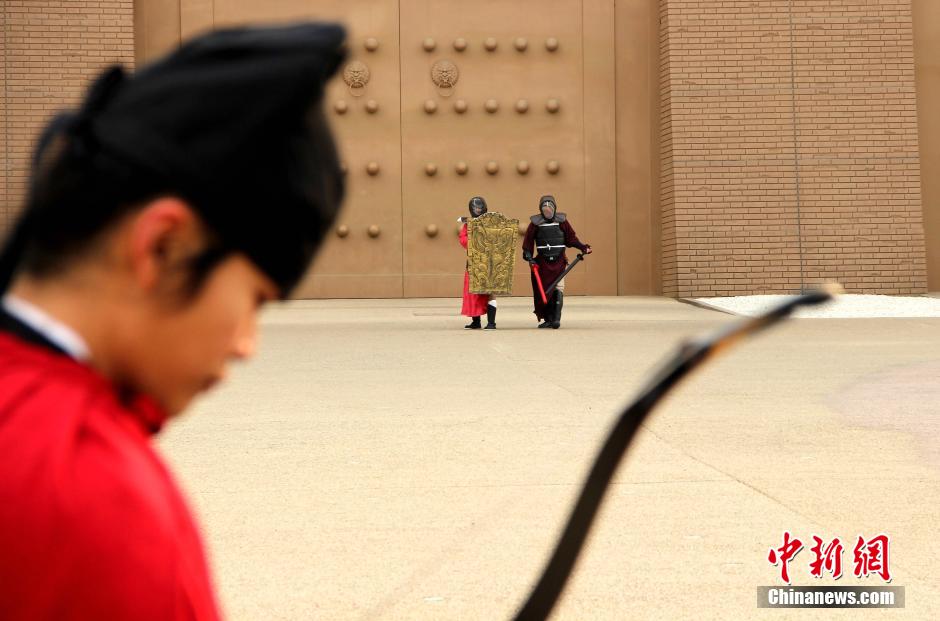 Citizens perform Wushu in a park in Xi'an. (CNS/Ma Zhifeng)