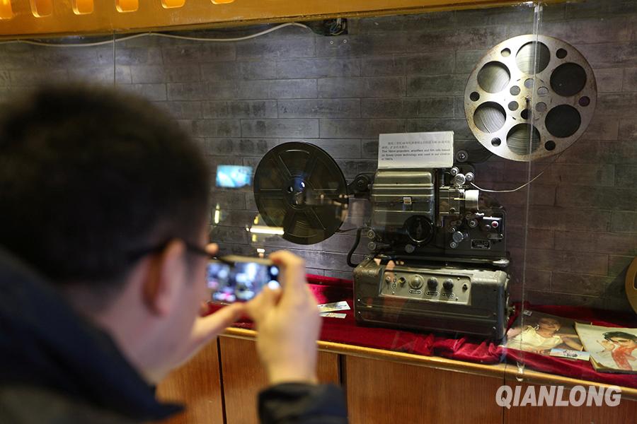 A 16mm projector imported from the Soviet Union in the 1960s is on display in Da Guan Lou. (Qianlong.com/Wang Yue)