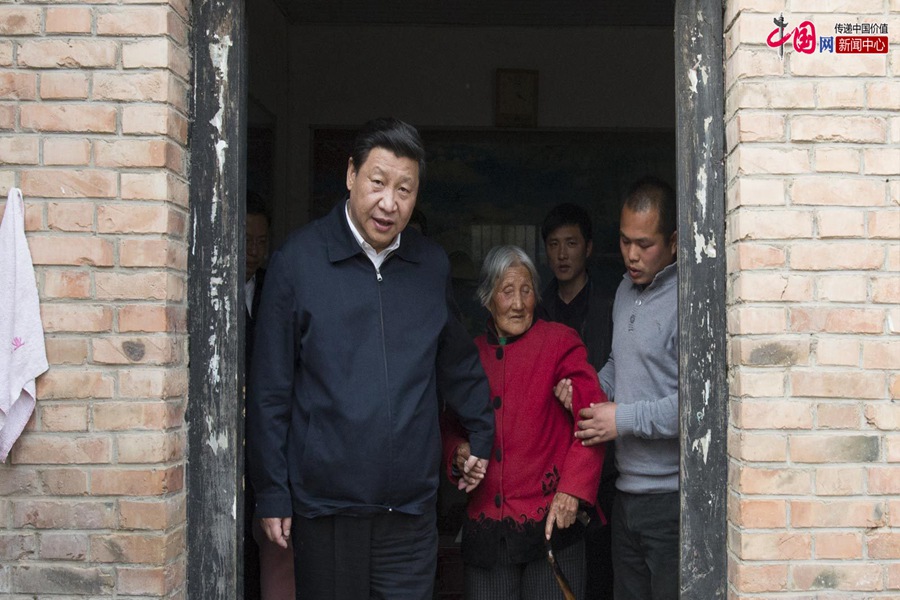 On March 17, 2014, President Xi visits Lankao county, central China's Henan Province. He visited 85-year-old villager Zhang Jingzhi, and urged local leaders to pay attention to and take care of every rural family, especially poor families. (Photo/China.com.cn)