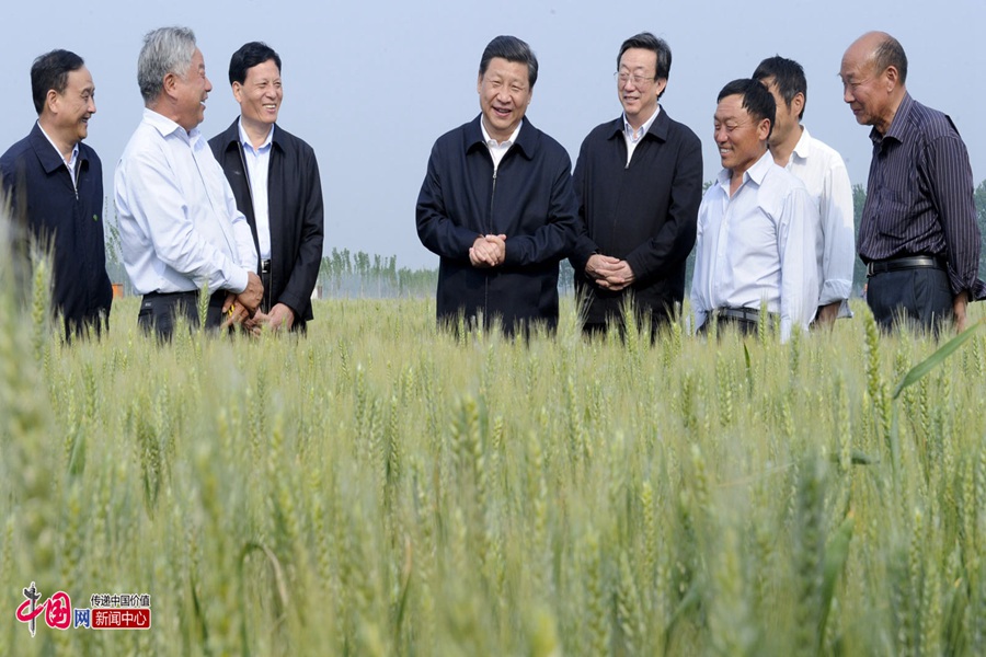 On May 9, 2014, President Xi visits Weishi county, central China's Henan province. Looking at the wheat field, he and local villagers expected a good harvest. (Photo/China.com.cn)