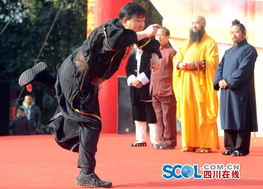 Ten Chinese kung fu masters from different martial art schools including Shaolin, Wudang, Qingcheng, Emei, Laoshan, Kongtong, Taiji and Longquan gather in Chengdu, capital of southwest China's Sichuan province to participate in the Chinese martial arts and cultural festival on Dec. 21, 2014. Their Kong Fu show won warm applause from the spectators. (Photo/SCOL)