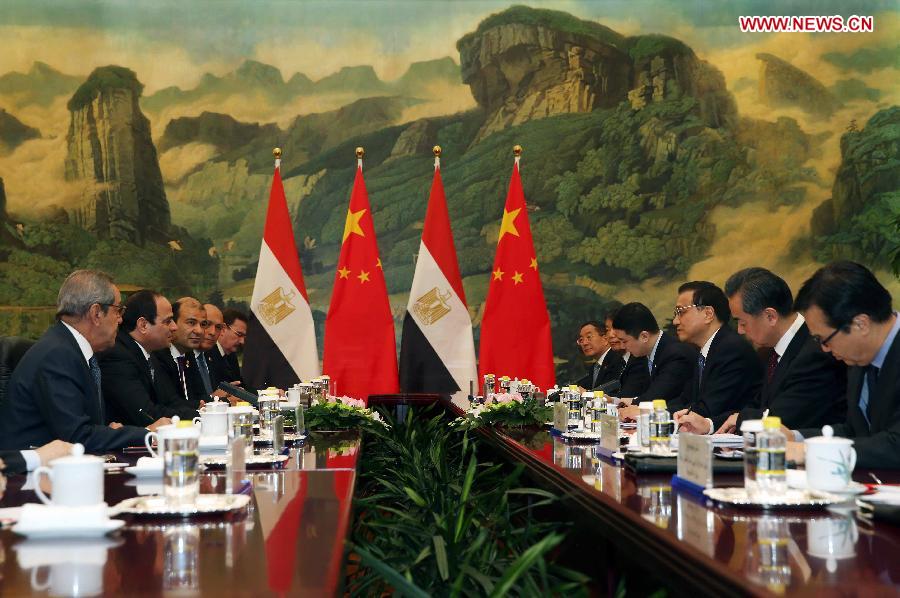 Chinese Premier Li Keqiang meets with Egyptian President Abdel Fattah al-Sisi in Beijing, capital of China, Dec. 24, 2014.(Xinhua/Liu Weibing)