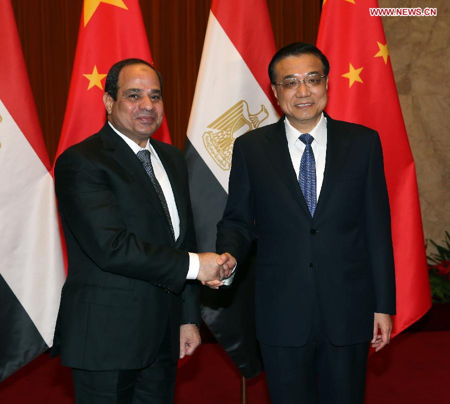 The pledge was made in the meeting between Premier Li Keqiang and Sisi in the Great Hall of the People.