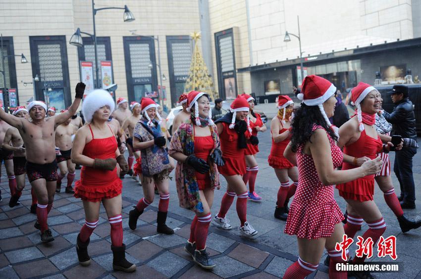 Citizens, braving the cold, participate in a swimsuit run in Changchun, northeast China's Jilin province on Dec. 24, 2014, to celebrate Christmas. (CNS/Zhang Yao)