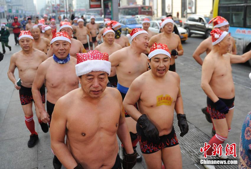 Swimsuit run in cold winter to celebrate Christmas in NE China (6)
