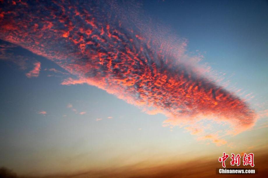 Photo shows the scenery of flaming clouds in Suichuan, southeast China's Jiangxi province on Dec. 23, 2014. (Photo/CNS)