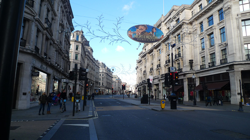 Photo taken on Dec.25, 2014 shows the heart of London's famous shopping street. Virtually everything is closed for business on Christmas Day in London. Some places, including banks, remain closed on Boxing Day. (People's Daily Online/Wang Yisan and Yang Bo)
