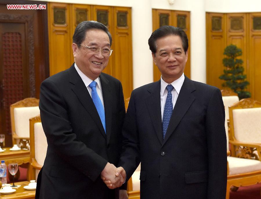 The consensus was reached in a meeting between China's top political advisor Yu Zhengsheng and Vietnamese Prime Minister Nguyen Tan Dung.