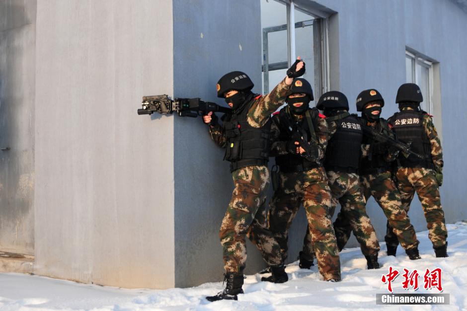 Female SWAT team members in Xinjiang train under harsh weather condition, Dec. 25, 2014. Members of this team are all with excellent physical qualities and educational backgrounds. After a long-term systematic training, they will undertake the mission of protecting the people and maintaining safety of the society. (Chinanews/Fan Xinyu)