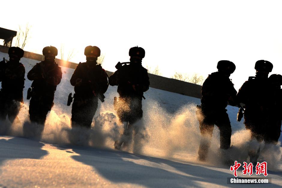 Female SWAT team members in Xinjiang train under harsh weather condition, Dec. 25, 2014. Members of this team are all with excellent physical qualities and educational backgrounds. After a long-term systematic training, they will undertake the mission of protecting the people and maintaining safety of the society. (Chinanews/Fan Xinyu)