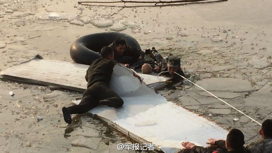 On Dec. 27, two men accidentally fell into an ice hole on a lake in Laiyang, east China’s Shandong province. Zhang Yulei and Liu Haiwen, two PLA soldiers who were on duty nearby, rapidly came to the accidental site to rescue the two drowning men with electric wires and other things available. Later, more soldiers took part in the rescue. Unfortunately, one of the men died, and the other is all right. Zhang Yulei was frostbitten and hospitalized. (Photo source: official microblog of PLA Daily)