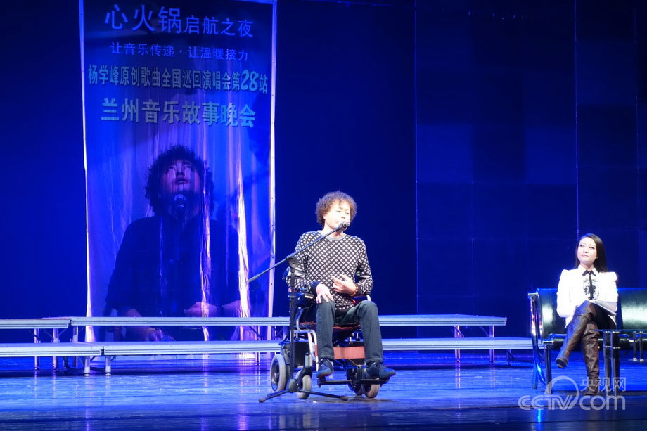 Yang Xuefeng afflicted with ALS held his concert in Lanzhou, northwest China's Gansu province on Dec. 17, 2014. His disease broke out when he was 16 years old. He did not know what disease he got until he was diagnosed with ALS one year later. He left home in pursuit of his dream at the age of 18 and set up a goal to hold a concert in the capital of each province in China. Up till now, he has held 28 concerts including the concert in Lanzhou.(CCTV.com/Wang XiaoYing)