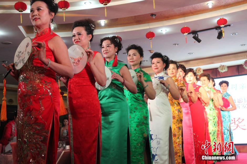 A group of old ladies launch a Cheongsam show in their pursuit of beauty in Lanzhou,northwest China's Gansu province on Dec. 29, 2014. (Chinanews.com/Liu Yutao)