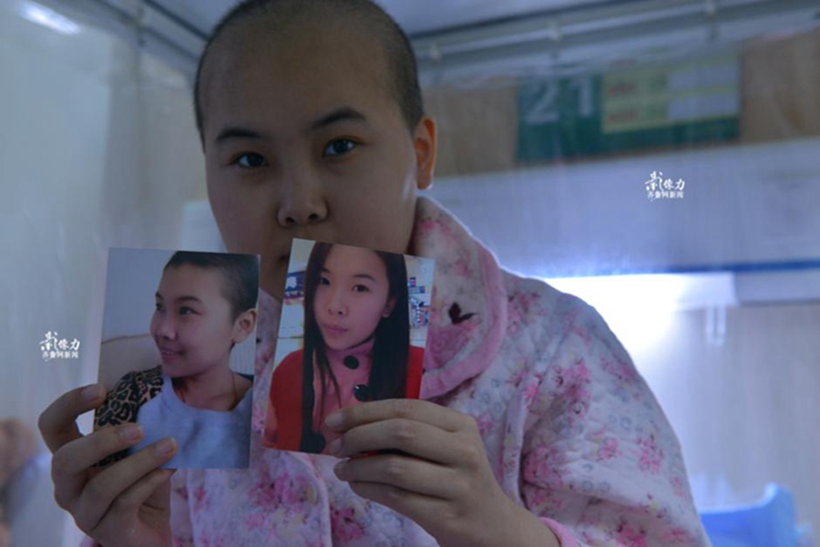Du Liyuan presents her photos taken before she was ill. (Iqilu.com/Yu Peng Zhang Shuai)