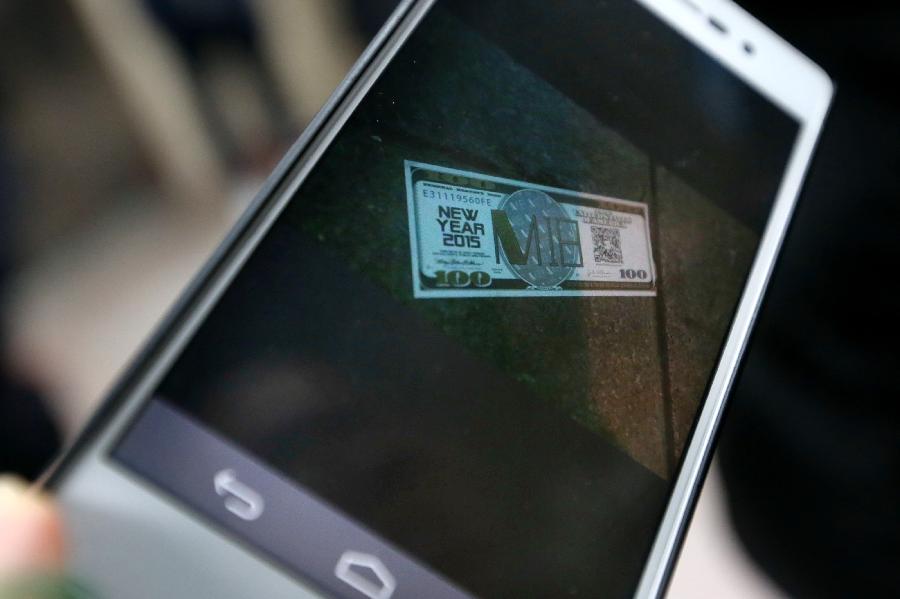Photo taken on Jan. 1, 2015 shows a picture of a coupon in a cellphone that looks like "dollar bill" which was thrown from a building's third-floor window near the scene of an accident that caused casualties among people who took part in new year celebrations in east China's Shanghai. New Year celebrations in Shanghai's bund area went astray Wednesday night as a stampede resulted in 35 people dead and 42 injured. A witness said that some coupons were thrown from a building's third-floor window near the Bund and people standing along the river bank started to scramble for these coupons. The city has set up a working team for rescue operations and to deal with the aftermath. (Xinhua/Ding Ting) |