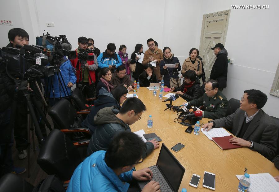 A local official introduces the condition of the victims at Shanghai Changzheng Hospital in Shanghai, east China, Jan. 1, 2015. New Year celebrations in Shanghai's bund area went astray Wednesday night as a stampede resulted in 36 people dead and 13 severely injured. The city has set up a working team for rescue operations and to deal with the aftermath. (Xinhua/Liu Ying)