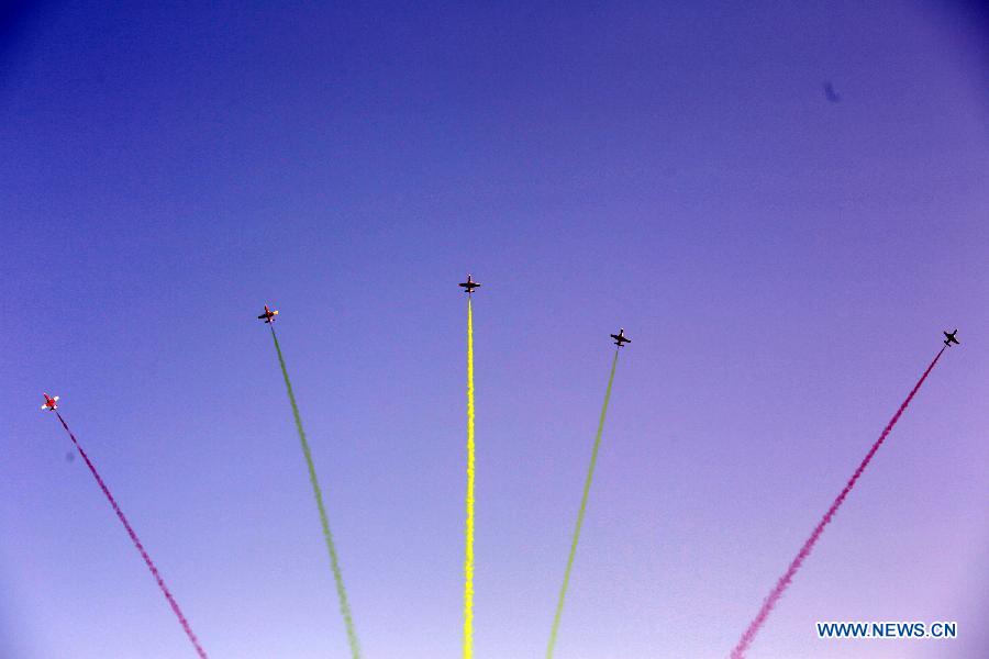 Myanmar military fighters participate in a ceremony to mark the 67th anniversary of Myanmar's Independence day in Nay Pyi Taw, Myanmar, Jan. 4, 2015. Myanmar resumed military parade and mass procession Sunday to celebrate the country's Independence Day for the first time in over five decades since the end of 1950s. (Xinhua/U Aung) |
