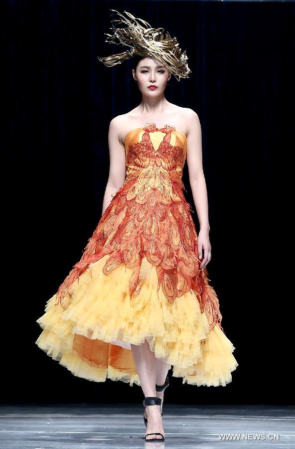 A model presents a creation by Malaysian designer Carven Ong at a wedding dress show during the China-ASEAN fashion week in Nanning, capital of southwest China's Guangxi Zhuang Autonomous Region, Jan. 3, 2015. (Xinhua/Chen Jianli)