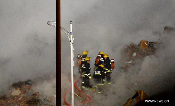 The fire, which occurred on Friday afternoon at a ware-house in Harbin, Heilongjiang province, caused the collapse of the building that housed the warehouse eight hours after the fire began. The collapse killed the five firefighters and injured 13 other firefighters and a security guard.