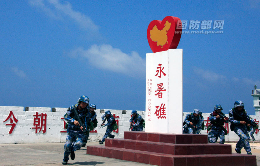 PLA Navy soldiers conduct training on the Nansha Islands. (Photo/mod.gov.cn)