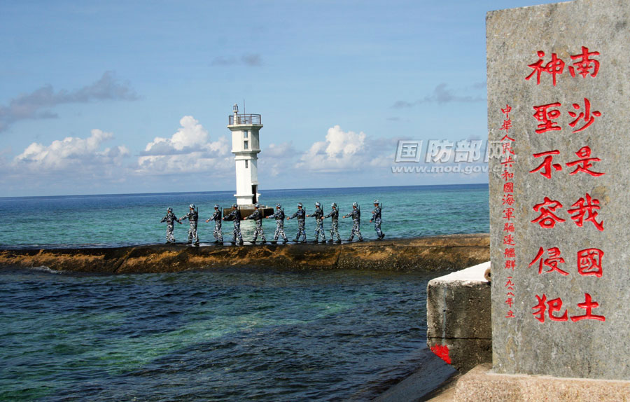 PLA Navy soldiers conduct a patrol on the Nansha Islands. (Photo/mod.gov.cn)
