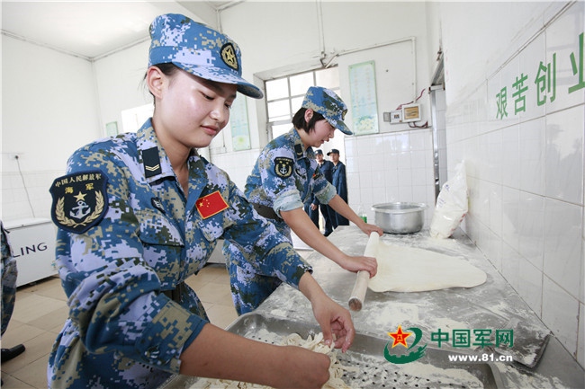 Female soldiers cook meals. (Photo/81.cn)
