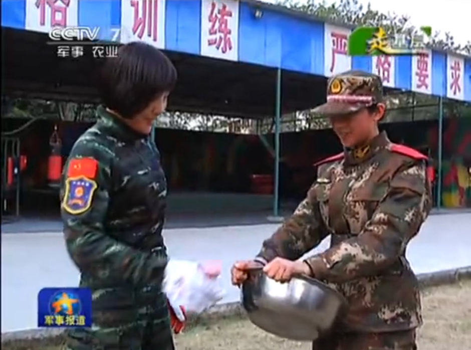 Photo shows a female SWAT member in Sichuan ripping apart a steel wash basin barehanded. Four hours physical training every day turns an ordinary woman into an invincible soldier. (Photo/CCTV)