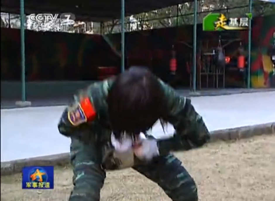 Photo shows a female SWAT member in Sichuan ripping apart a steel wash basin barehanded. Four hours physical training every day turns an ordinary woman into an invincible soldier. (Photo/CCTV)
