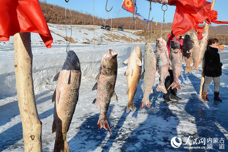 Big fishes are sold on auction at the winter fishing festival in Zhalantun city, north China's Inner Mongolia, Jan. 2, 2015. (nm.people.cn/Ji Mingguo)
