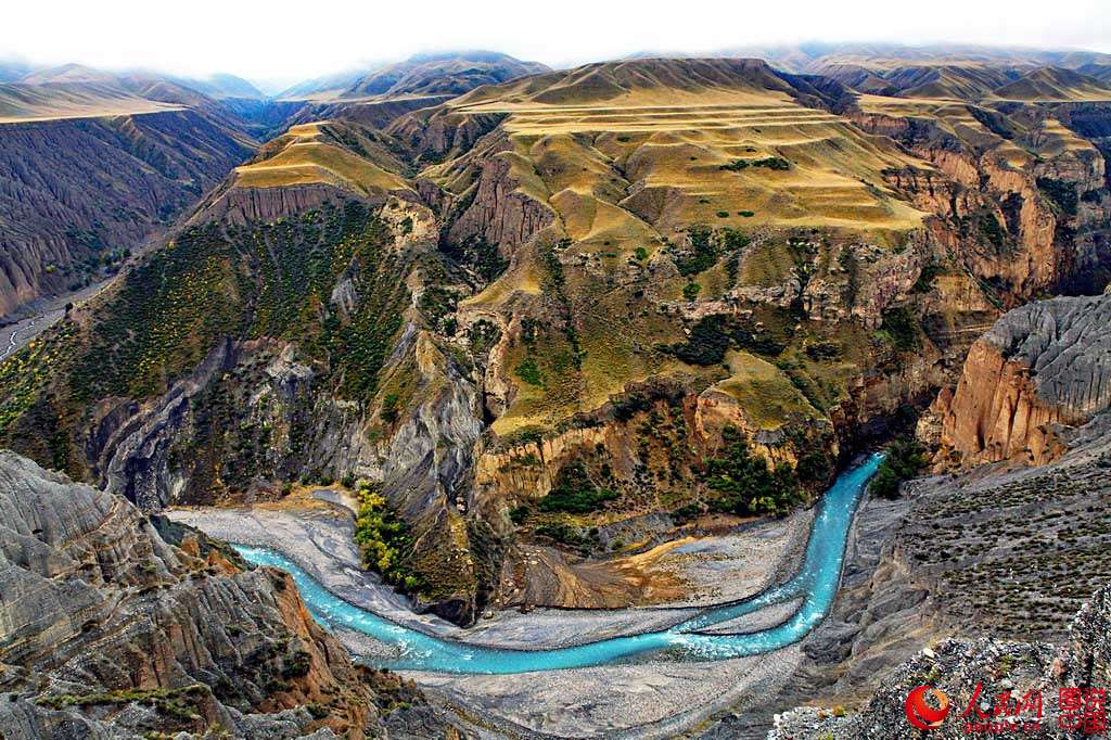 Hongshan Grand Canyon is located around Anji Haihe River, northern slope of Tianshan Mountain, northwest China's Xinjiang. (Photo/People.cn)