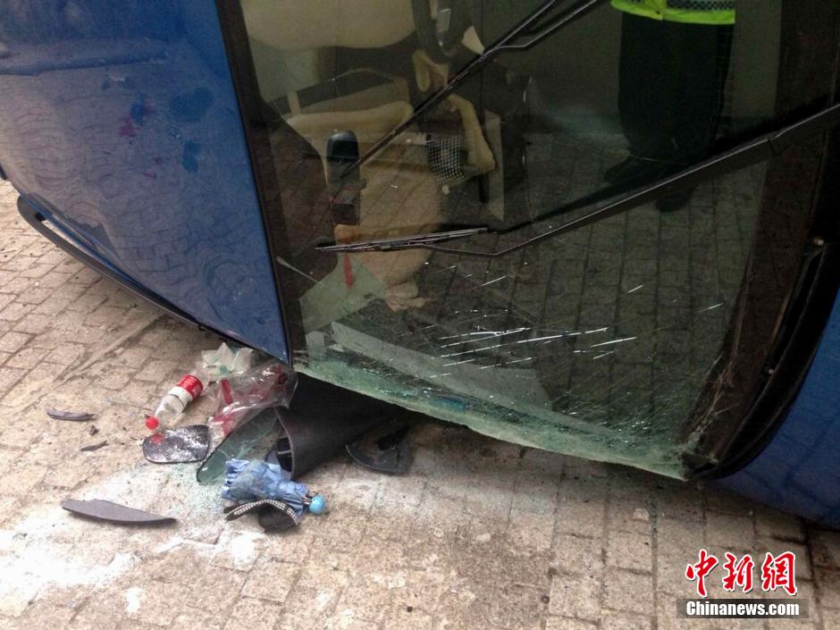 Due to negligence, a woman fell from a 6-meter-high platform when reserving her car in Wuhu, east China's Anhui province on Jan. 6. The car was severely damaged. Fortunately, the woman was miraculously unharmed, thanks to her seatbelt. (Photo/CNS)