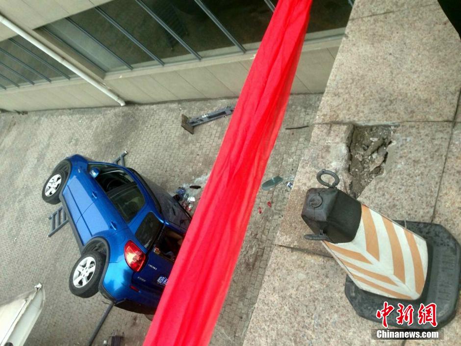 Due to negligence, a woman fell from a 6-meter-high platform when reserving her car in Wuhu, east China's Anhui province on Jan. 6. The car was severely damaged. Fortunately, the woman was miraculously unharmed, thanks to her seatbelt. (Photo/CNS)