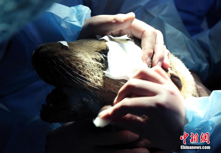 Sea lion receives surgery in E China after breaking the jaw (2)
