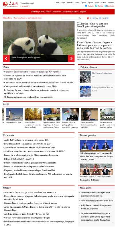 Beijing, Jan. 8 (People’s Daily Online) — People’s Daily Online launched today a Portuguese website (portuguese.people.cn) as part of its continuing effort to enhance global influence.