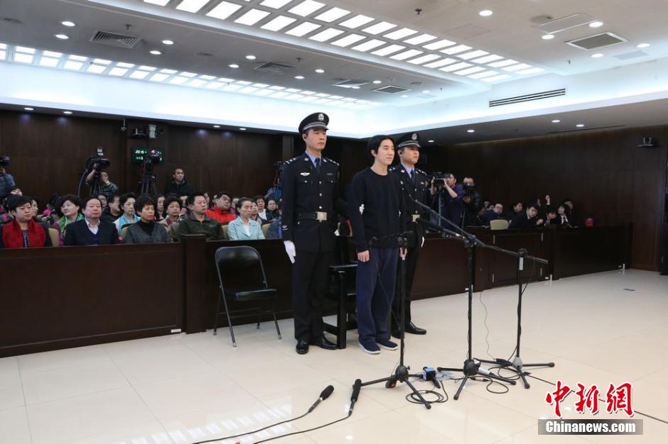 Jaycee Chan, stands trial on Friday for a drug-related crime at the Dongcheng District People's Court in Beijing, Jan. 9, 2015. Jaycee Chan, son of Chinese kung fu star Jackie Chan, was sentenced to six months in jail on Friday for drug offense at the Dongcheng District People's Court in Beijing. (Photo/CNS)