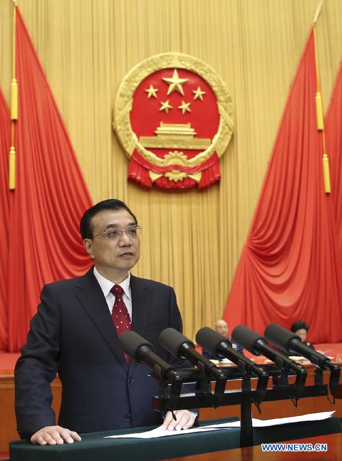 Chinese Premier Li Keqiang addresses the presenting ceremony of China's 2014 State Top Scientific and Technological Awards at the Great Hall of the People in Beijing, capital of China, Jan. 9, 2015. (Xinhua/Ma Zhancheng)