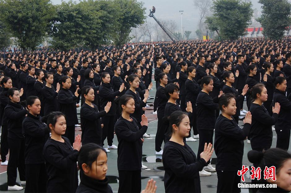 10,021 students from Sichuan Southwest College of Civil Aviation practice Wing Chun in Chengdu, southwest China's Sichuan province, Jan. 8, 2015. (CNS/Liu Zhongjun)