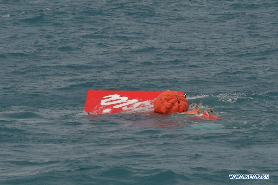 The tail section of crashed AirAsia flight QZ8501 is hoisted from the Java Sea off Indonesia's Central Kalimantan coast, Jan. 10, 2015. (Xinhua)